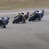 Bike racing is better than car racing for more reasons than I have time to list, but one of my favorites is that motorcycles are narrow and agile, easy to throw into a small space between your rival and the checkered flag. Motorbikes are so narrow, in fact, that there can be more than two fighting for the same piece of track and still be on the racing line. More or less.