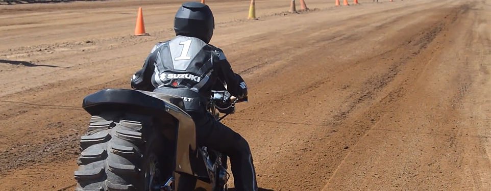 I expected the bikes to swerve and fishtail, but those massive tires do a surprising job of putting the power down. Why no one is using some sort of knobby or sand ribbed tread patterned tire is beyond me, but the bikes track fairly well, regardless. What makes this so fun (I'll never watch normal drag racing again) is that the combination of low traction, massive tires, and tons of power make this sport part drag racing and part bull-riding, only the bike doesn't come after you once you've been bucked.