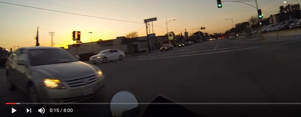 On a practical level, I think the rider followed up the pointless horn-blowing and gesturing with a bigger error in the final incident, which runs from 7:45 to the end. After the initial incident, the rider lane-splits and pulls up beside the driver he just gestured at. If I'm involved in any kind of unpleasantness in traffic, my goal is to get away from it as quickly as possible, and where lane-splitting is a legal option, that's often simple. I get my revenge by leaving the car mired in traffic as I go on my way, using my motorcycle's speed and mobility.