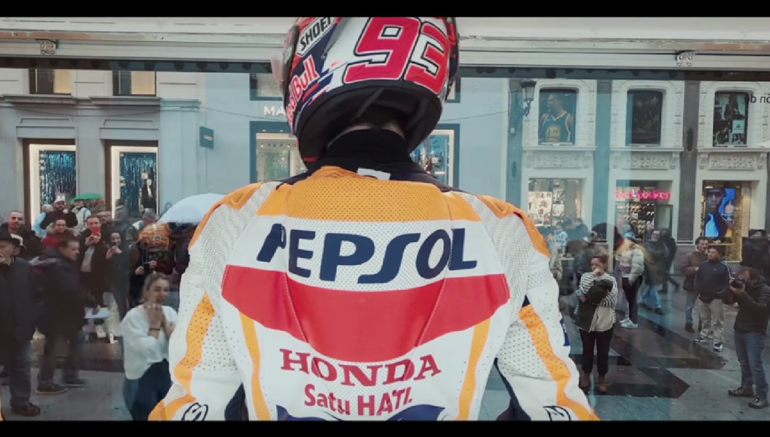 This year, Márquez played a trick on some shoppers in Madrid so the video could be posted today. What exactly is that in the window?