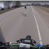 The second GoPro-equipped rider (the woman on the black Ninja) has a frankly terrifying view of the second crasher (Travis.) His momentum carries him several feet into the left lane, where the onrushing semi nearly smears him.