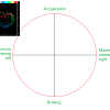 In 1936, German engineer Wunibald Kamm introduced the concept now known as the Kamm Circle, or the traction circle. It visually represents how a tire's available grip is shared between longitudinal (braking and acceleration) and lateral (cornering) forces. The center of the circle is coasting. No acceleration, no turning. At the side edges you have maximum lean. At the top you have maximum throttle; at the bottom, maximum braking. Between roughly four and five o'clock and seven and eight o'clock is where braking and cornering forces blend. That blended area is trail braking.