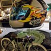 We went to his basement shop area and he displayed an AGV box that looked like it came approximately from the Paleolithic era. The helmet came from one of Bobby’s customers who knew Bobby collected lids. The thing was really complete, with paperwork, controller, and helmet in lovely shape.