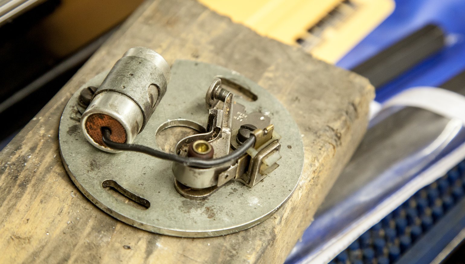 Remember, they ain’t got fancy computers to make sure that critical spark happens at exactly the right moment. It’s nineteen dickety-two, remember? What they needed was a reliable, mechanical way to distribute the spark the coil makes. The up-and-down movement of the piston doesn’t move the flywheel equally at all points in the stroke, so the designers realized they can’t use any of the pieces that move linearly for timing purposes. Once the linear energy was translated to rotary motion, however, it was (and still is) smooth and consistent, so they used the rotating camshaft, fitting something not unlike a cam lobe, fastened to the end of the cam. The bump on the lobe lifts and “breaks” the ignition points apart. That causes the coil to lose its ground and the plug to fire a split-second before the piston comes to the top of the stroke, right before the power stroke. (A little ignition advance is necessary. If you don’t know why we need advance, it’s OK. Just think of it as happening at the top for simplicity’s sake.) Easy, right?
