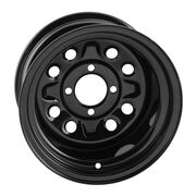 QuadBoss Steely Wheels feature a stylish rock-crawler design that's been powder-coated black for a durable, long-lasting finish.