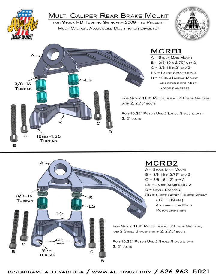 Alloy Art Rear Brake Multi Caliper Mount For Harley Touring 2009-2025 Instructions