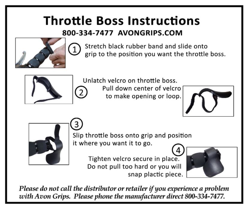 Avon's new Throttle Boss helps eliminate hand tingle. Slide Throttle Boss into position you like and tighten Velcro.