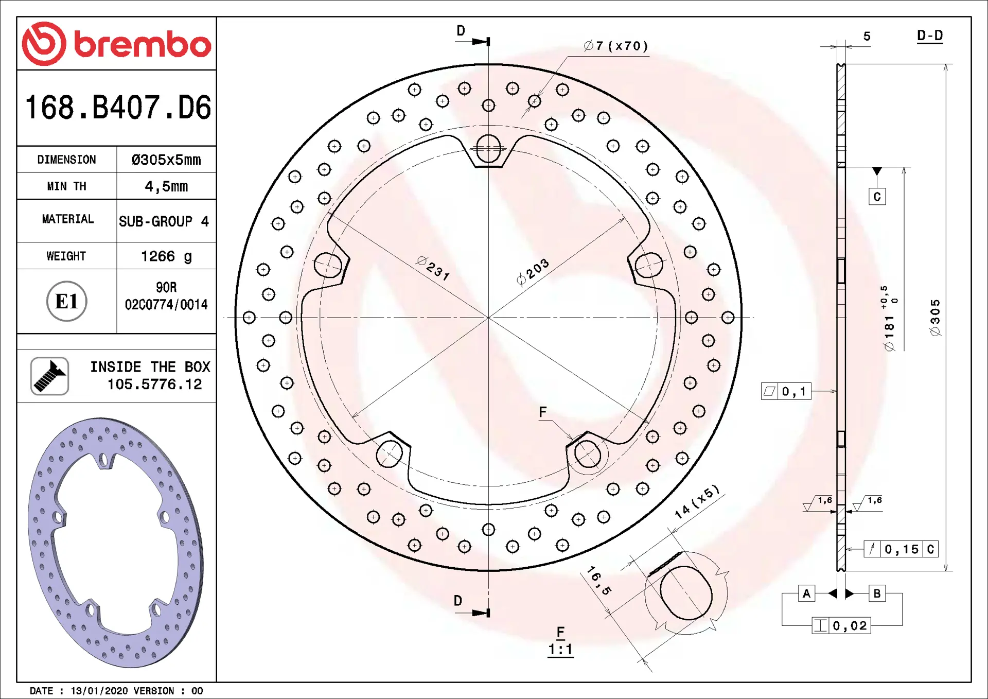 | Product Style Brembo Serie Oro Fixed Front Brake Disc 168B407D6 | RevZilla Item #10533334 | Store Sku | MFR. Product #168B407D6 | AvailabilityOnly 1 Left: Ships within 24 hours |