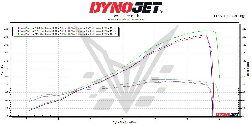 - RPM limiter raised from 13,600 RPM to 14,200 RPM (optional)
