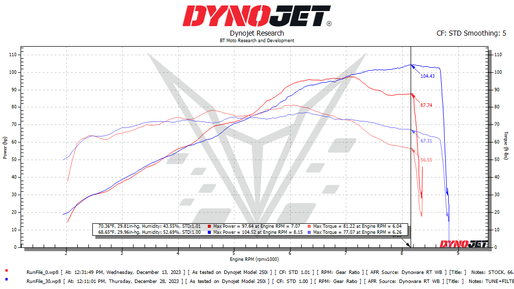 - Power and torque gains due to unrestricted throttle and removal of limiters