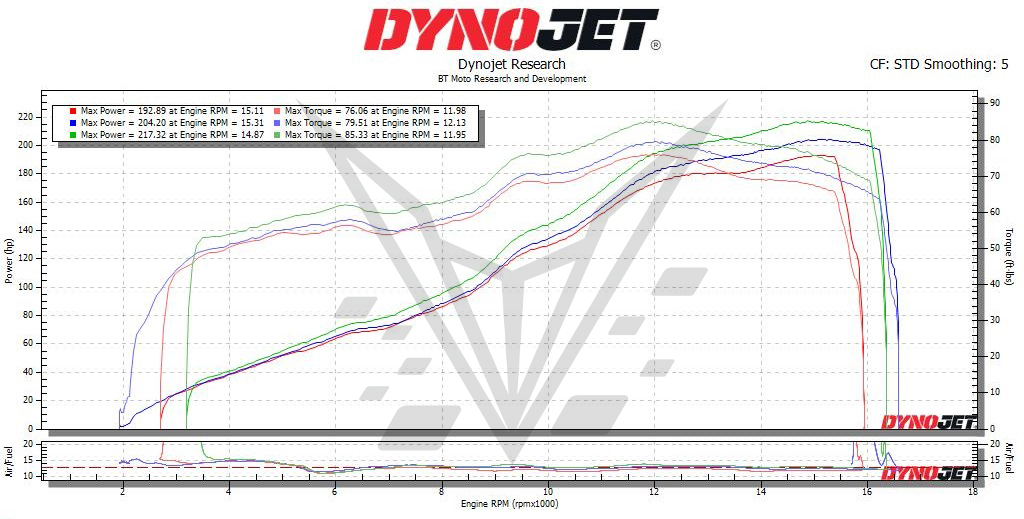 - Lean spike or "dead spot" found at 5,000 RPM with stock exhaust fixed
