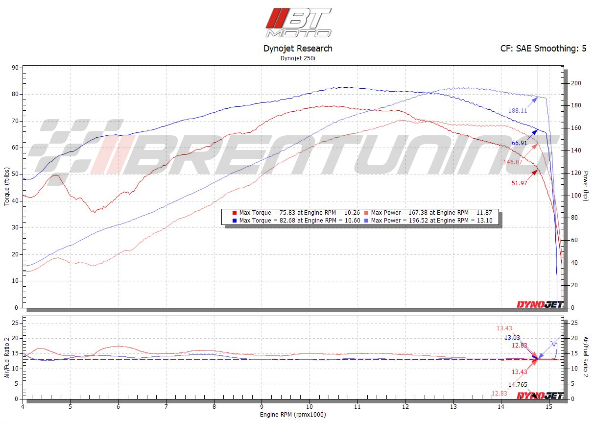 Additional horsepower and torque from expertly crafted fuel maps are just the tip of the iceberg. The ability to edit ignition timing, speed and rev limiters, engine braking, and quickshifter timing are all but to name a few parameters which can be edited with the Stage 1+ Performance Calibration (adjustable parameters can vary based on year, make, and model).