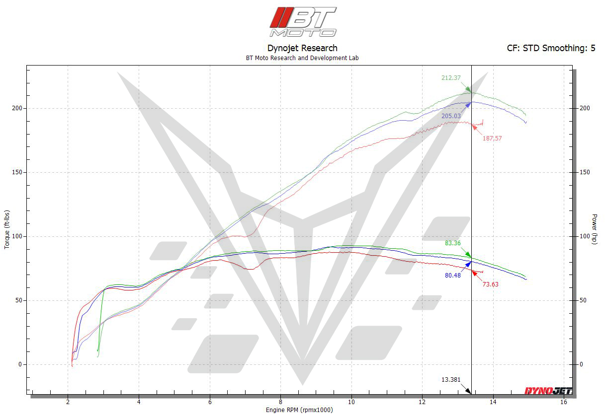 Note: Air/fuel adjustment not required however, BT Moto Stage 1 Flash recommended for advertised results.