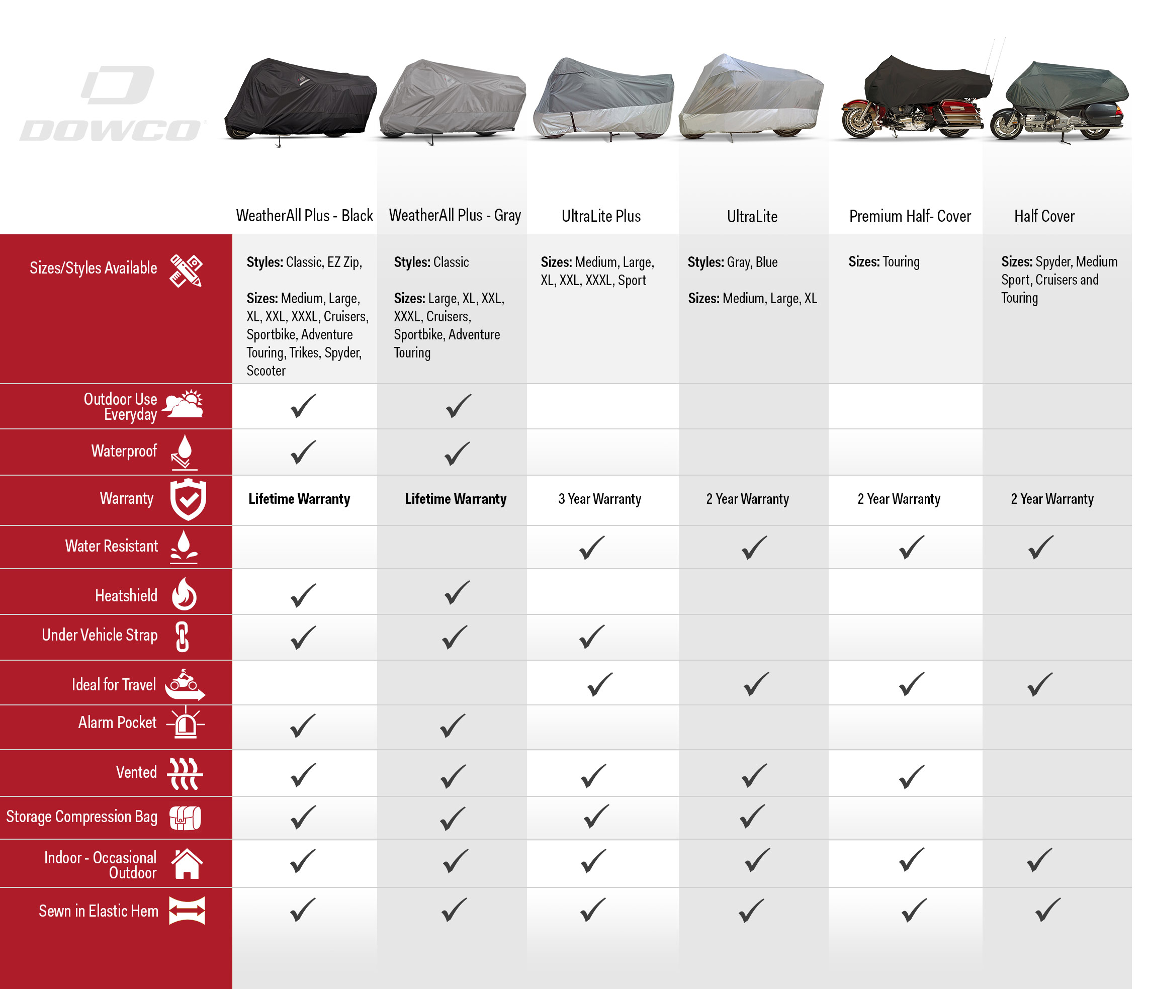 - Size "2XL" covers may arrived mislabeled from Dowco. If your cover appears mislabeled on the cover's sewn-in tag, check the box for a note from Dowco explaining the discrepancy.