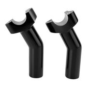These risers are forged from 6061 T-6 aluminum for superior strength and then CNC-machined for precision fit on handlebars with a 1" diameter clamping area. They are designed to fit applications with 3.5" on-center mounts and will accept most OEM-style top clamps with offset mount holes. They are drilled and tapped for 1/2"-13 riser bolts that are sold separately. The matching Drag Top Clamps are also available.