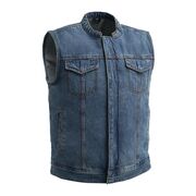 The First Manufacturing Havoc vest is a lightweight Club Style vest made in Blue Washed Denim and designed to give extra comfort with all specialized motorcycle features. This vest offers an affordable option for hot weather riding and multiple pockets for storing and concealing.