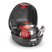 The E300N2B Monolock Case is a small top case that is perfect for storing a helmet when you arrive at your destination. A single key secures the lid and removes the case from the bike. The E300N2B latches into a Givi Monolock top case plate which can be mounted to most OEM luggage racks. For bikes without factory luggage racks, Givi may have a bike-specific Monolock rack that is sold separately.