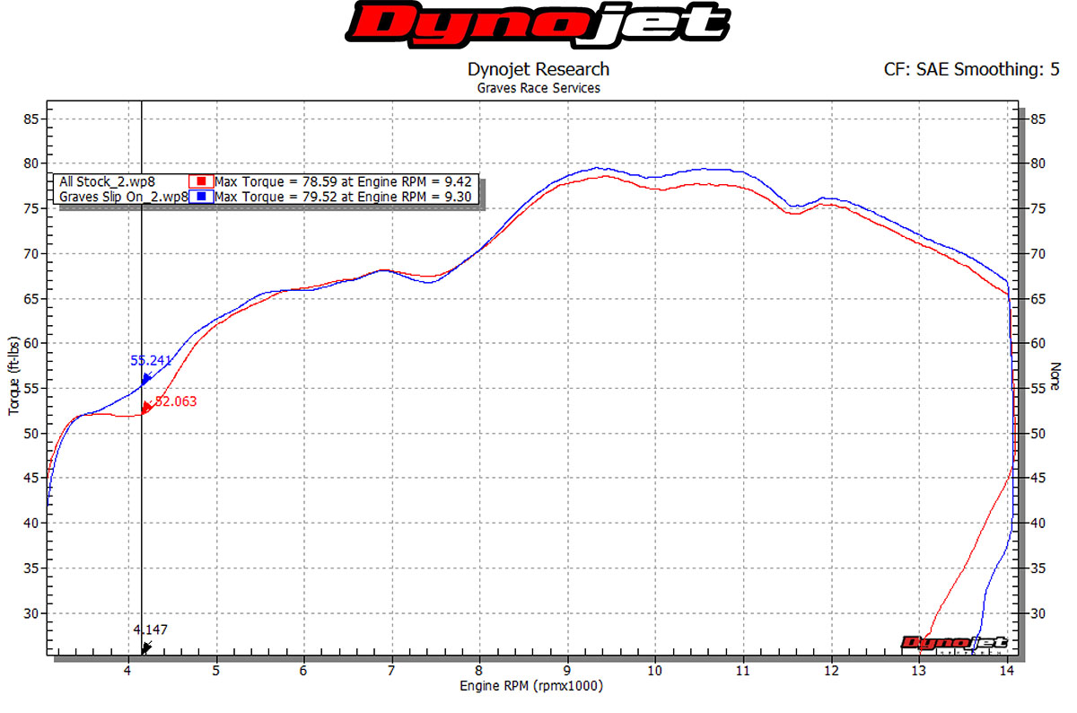 | Unit | Stock Exhaust | Graves Exhaust | Max Gain | |