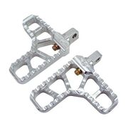 Give your bike a unique design twist with these all-billet aluminum adjustable serrated footpegs. The large, comfortable serrated foot surface area gives you a wider area while the heel section works great for driver or highway pegs and provides a good bite onto the bottom of your shoe. Full 360 degree rotation makes these footpegs perfect for any application. Footpegs have a pitch adjustment screw that enables you to change the angle of the peg in order to adjust it to a level riding position so the pegs don't appear to sag.