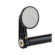 These mirrors are inspired by aircraft structural design combined with the unique race styling. The mirror heads and mounting parts are completely CNC machined from billet aluminum, super lightweight, strong, and fully adjustable in a multitude of directions and settings. Super solid units reduce vibration and make for a clearer image in the mirror. With little modification, these units can be mounted through the ends of most existing grips, by drilling or boring the grip end. These mirrors provide exceptional rear visibility due to the use of the custom-made convex mirror that works on either the left or right side.