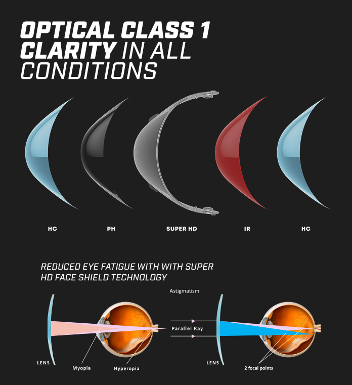 - Both face shields have optical Class 1 clarity, even with PINLOCK® installed