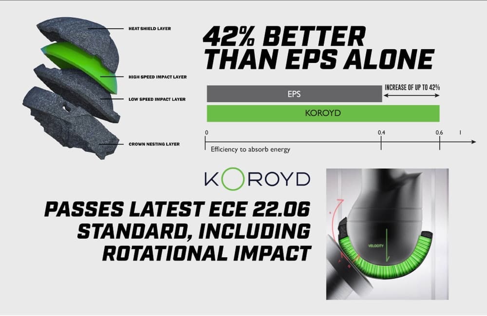 - KOROYD + EPS shell construction optimizes impact protection and reduces heat absorption with direct ventilation through KOROYD® structure and EPS channeling