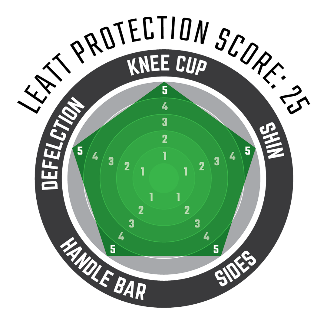 The Leatt Dual Axis knee and shin guards are comfortable, well-ventilated protectors with two pivot points that allow them to more accurately bend with the knee’s natural movement. They cover the knee, even when fully bent, as well as the lower thigh and most of the lower legs. Great levels of impact protection are proven by the CE impact safety standard they are certified to. They are also certified to CE’s abrasion resistance safety standard. The strap buckles are low profile with no edges to hang up on your riding pants. Straps are also backed by soft, comfortable, vented airprene material that resists slipping. Lighter weight, comfortable and offers more freedom of movement than almost any other CE certified protection system.
