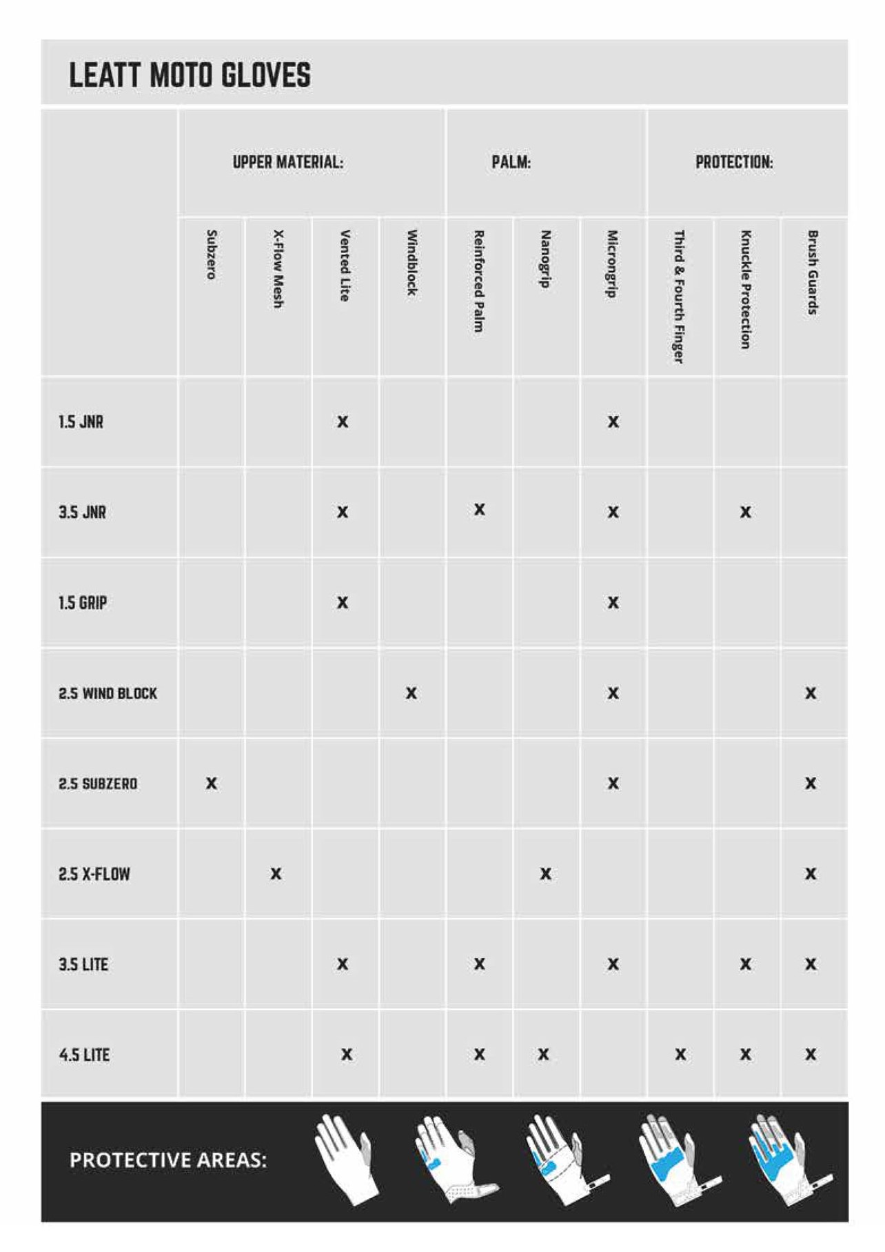 - Knuckle Impact protection EN 13594:2015, reduced requirements adapted for off road use