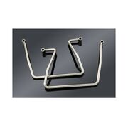The Milwaukee Twins Saddlebag Support Brackets are designed to keep throw-over saddlebags safely away from the brake caliper and swingarm, preventing interference while riding.