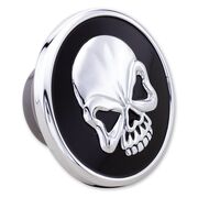 Add some style to your ride with this easy to install upgrade from Milwaukee Twins. The chrome skull on a black background creates an 3-D effect.