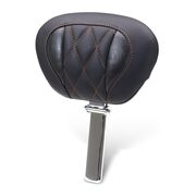 Get ready for those long miles with this Mustang Super Touring Deluxe Diamond Driver Backrest. The perfect match for your Super Touring Deluxe Diamond One-Piece 2-Up Seat. The receiver is already built into the seat making this a quick and easy addition. Easily installed and removed without tools, so you can store it in your saddlebag or Tour-Pak when not in use. Built with the same high-quality materials and craftsmanship that you would expect for the ultimate comfort and style. Stitching accents are available in classic Black, Gunmetal Gray, Dark Cherry, Mandarin Orange, and Sky Blue to compliment your bikes look.