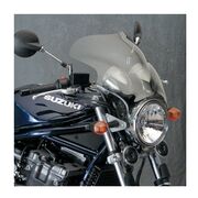 The National Cycle F-16 Headlight Mounted Windscreen has a sleek, pulled back bubble style that is quite effective in deflecting wind blast and bugs. This windscreen fits close and mounts easily to the side of the headlight.
