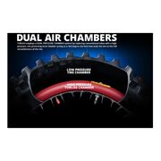 The Nuetech Tubliss 2.0 Kit replaces conventional inner tubes with a small red insert that creates two different pressure zones inside the tire itself. This enables an incredible 100 PSI of rim protection, increased tire stability, and eliminates pinch flats. The Tubliss system also allows you to run much lower tire pressures than you normally would with a standard tube. The lower tire pressure creates a larger contact patch, leading to greatly improved traction and a plusher ride.