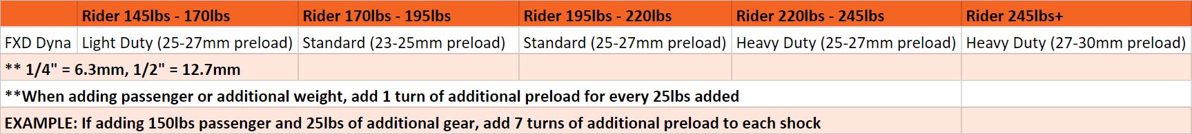 - Standard recommended for individual rider weighing 180lbs - 225lbs