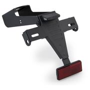 Clean up the back end of your bike with the Puig Fender Eliminator Kit for a racing-inspired transformation. This holder elevates the position of your license plate, adding a dynamic and aggressive character to your bike. The combination of steel components finished in epoxy paint with Polyamide pieces not only ensures durability but also significantly reduces the weight compared to the original support. Enhance your ride with this lightweight and stylish license plate holder from Puig.
