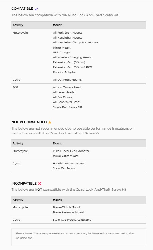 Quad Lock Anti-Theft Screw Kit Instructions