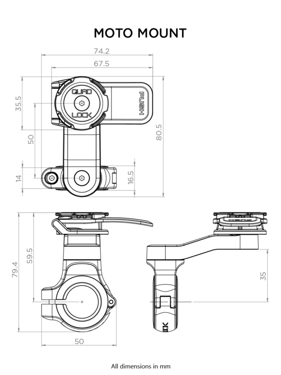 Quad Lock Motorcycle Handlebar Mount [Open Box] Schematic