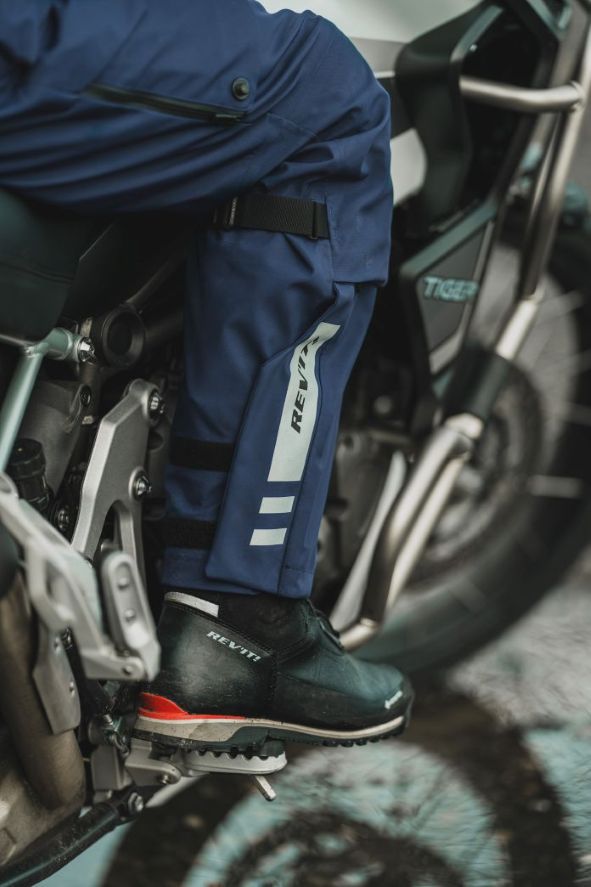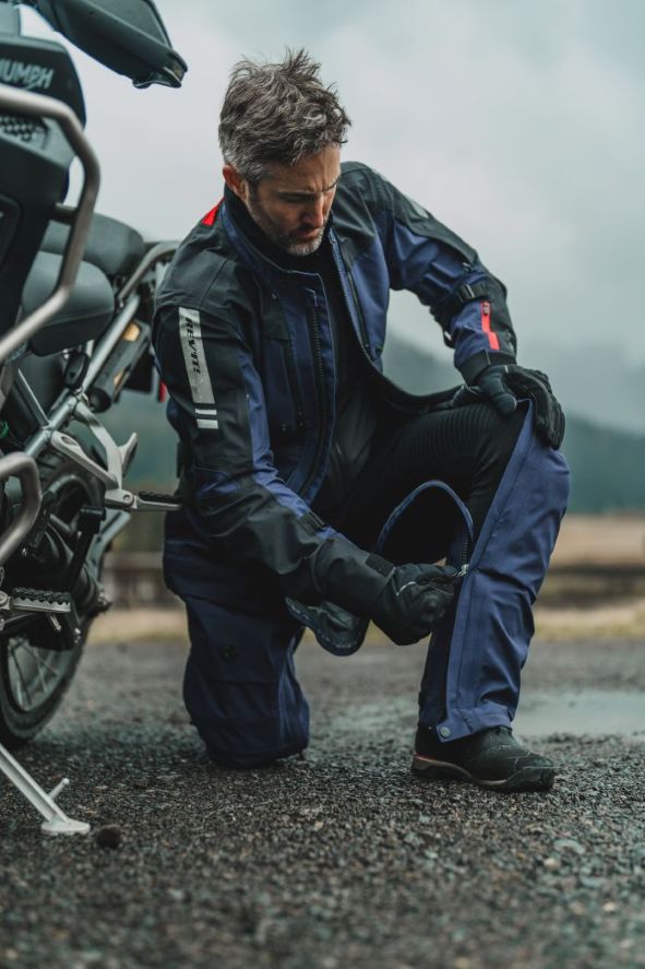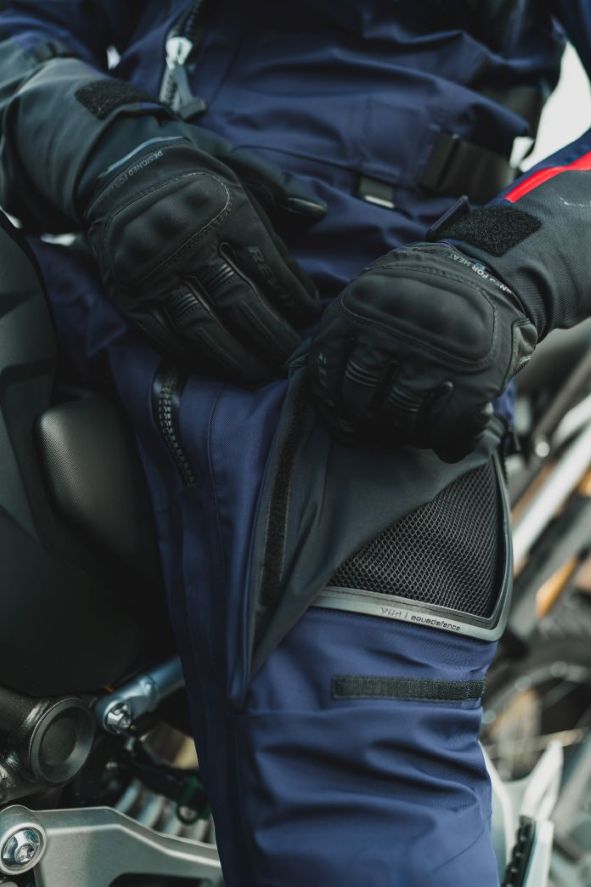The highly intelligent folks at REV'IT! invented a VCS|Aquadefence system in order to maintain complete waterproofing without sacrificing a chance to let air in. Simply pull the front thigh panels back and lock them to the inner top corner using the built in FidLock magnetic fastener. These panels are intentionally placed to provide optimal ventilation to the top and bottom to keep the rider cool in the saddle.