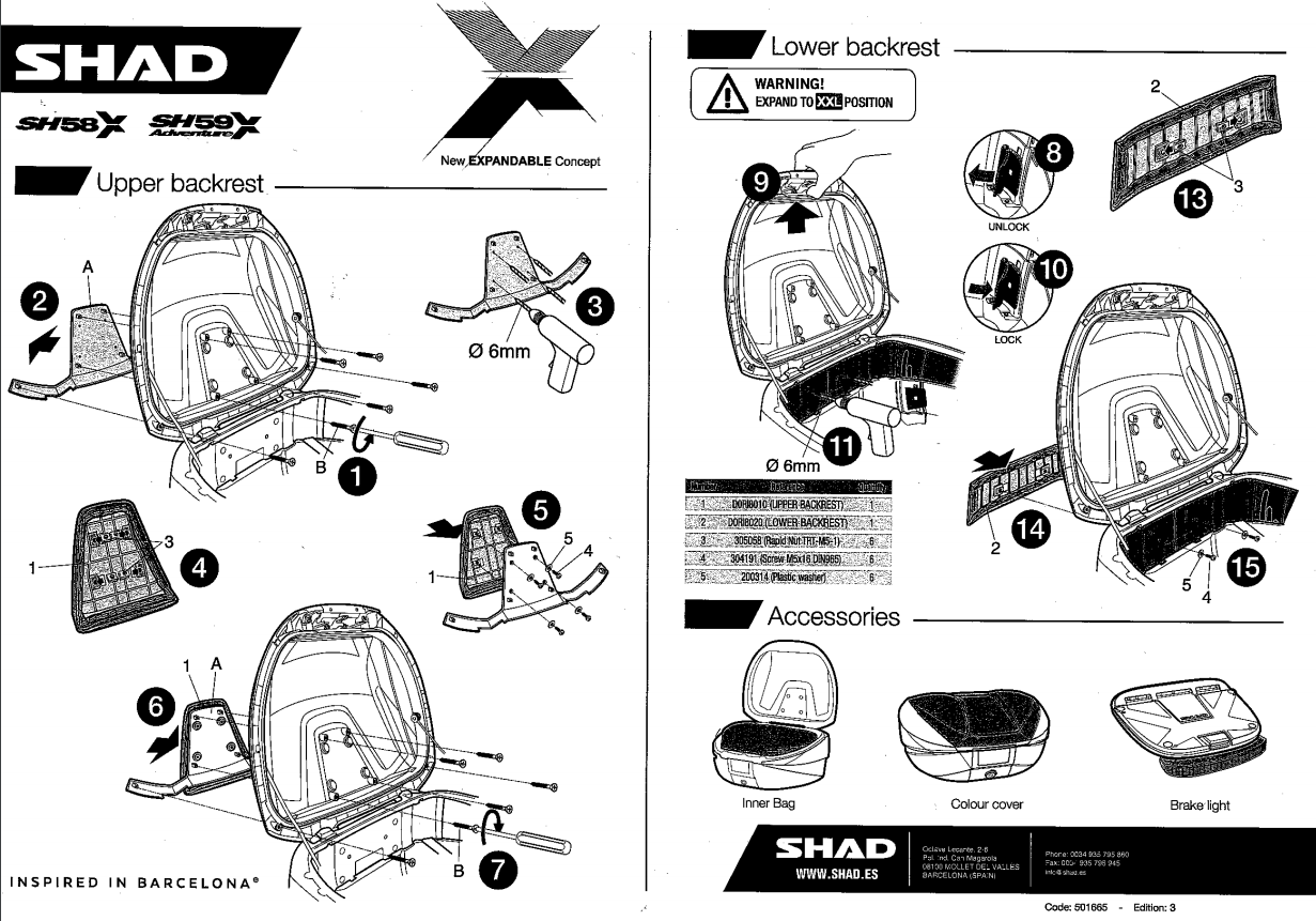 The Shad D0RI80 Backrest Pad affixes to Shad SH58X and SH59X top cases to provide comfort for a passenger. Installation will require minor drilling of the top case. Hole locations are molded into the plastic, viewable from under the lid.