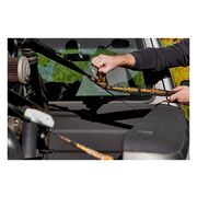 Stockton Carabiner Ratchet Straps feature a 7-foot overall length and oversized 1.5" strap width (38mm). Each ratcheting tie down includes a rubber-coated wide-gap hook on one end and a chromed steel carabiner clip that mates to an integral nylon loop on the other end. This unique design allows attachment to handlebars, frame rails and attachment points without scratching paint. The nylon strap webbing has a 2,300 pound straight tension break strength and is triple stitched for extra durability. The steel ratchet mechanism allows you to tighten the straps and lock them in place.
