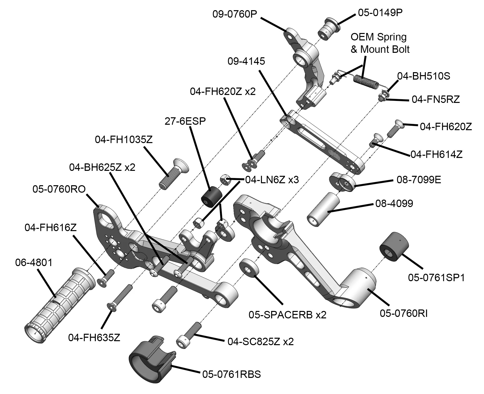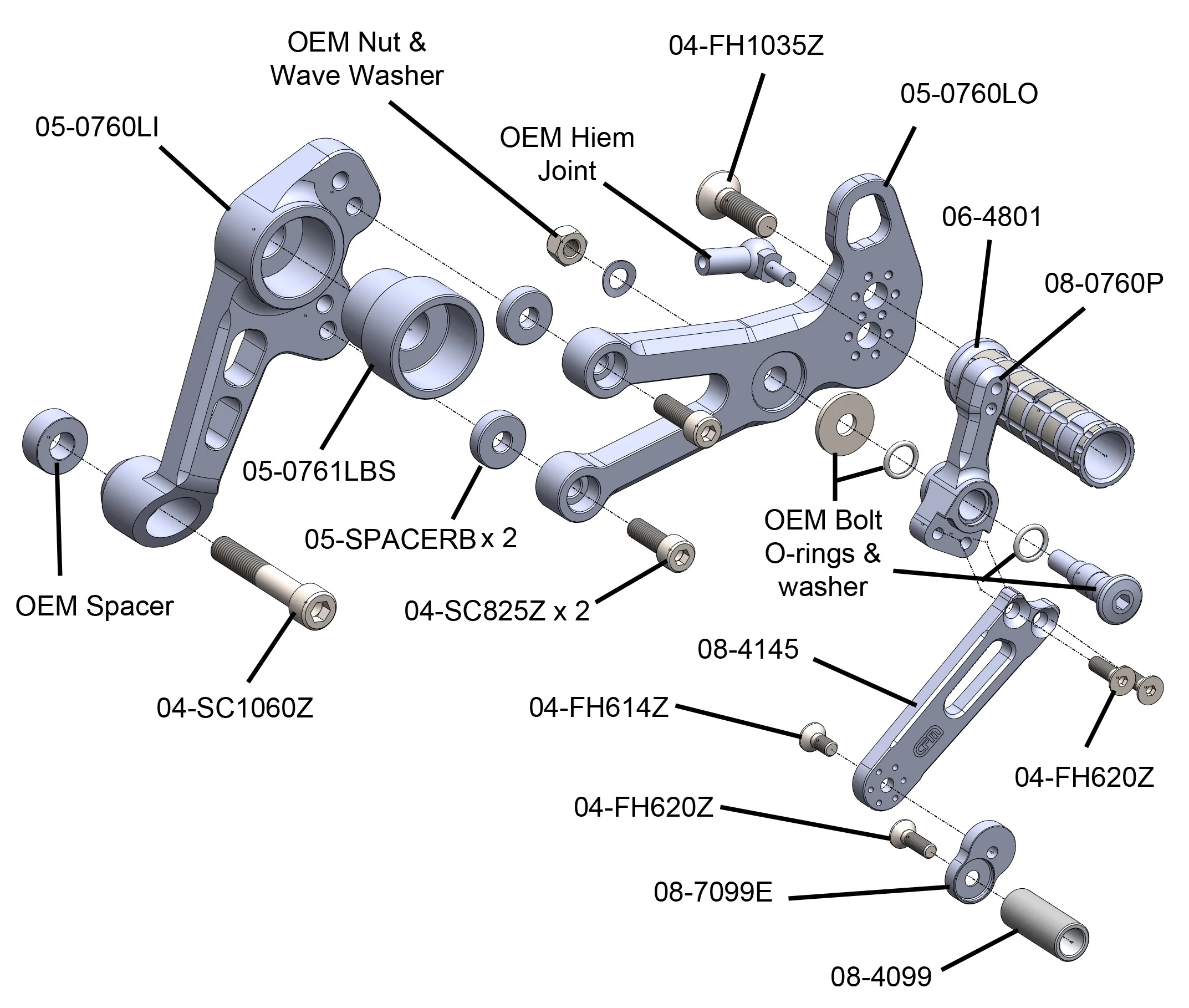 Woodcraft designs and builds their rearsets based on three key areas: function, durability and ease of repair. First, the rearsets must function beyond all else. They must provide the adequate ground clearance and vital feedback that a fast rider needs to push his or her machine to the limit. Second, they must be able to take a beating and keep on going. These rearsets are machined from 6061-T6 billet aluminum, resulting in a rearset that is more than twice as durable as an OEM rearset. In the event of a crash, the fixed high-grip knurled footpegs act as a secondary frame slider to keep the swingarm and mid-frame off of the tarmac. Lastly, many Woodcraft Rearsets utilize a 3-piece design that provides ease of assembly and repair. The fewer parts there are, the less that can go wrong.