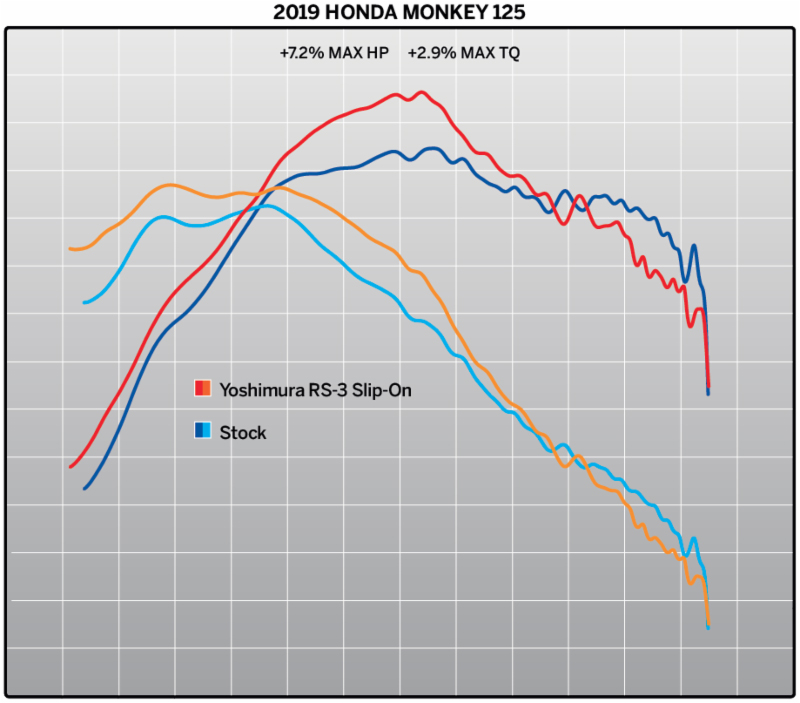 Yoshimura has really gone all out on the RS-3 Works Exhaust for the Honda Monkey. Each piece if this exhaust has been created to fit the fun and retro style of the Monkey. It features a classic RS3 muffler with a big red Yoshimura logo. Both the stainless steel exhaust bands and heat shield incorporate laser cut monkey silhouettes for a funky twist. Inside the Works finished muffler, you will find a straight baffle which increases throttle response and power output. All of this combined will allow you to really go bananas on your Honda Monkey!