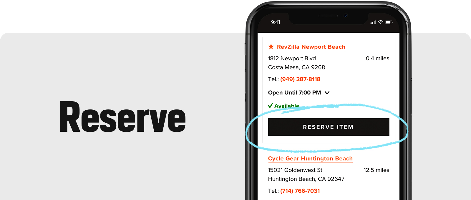 Check out what we’ve got in stock locally before you ride out. We’ll even stash it aside for you! Follow the steps below to reserve an item online for in-store purchase.